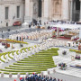 Con más de treinta mil peregrinos de los cinco continentes, la celebración del anuncio de la Resurrección en el atrio de la basílica vaticana adornado con las hermosas flores de Holanda. Largo recorrido en el papamóvil al final de la misa para la bendición de los fieles