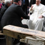 Un reclinatorio de madera de la barcaza Cutro donada al Papa